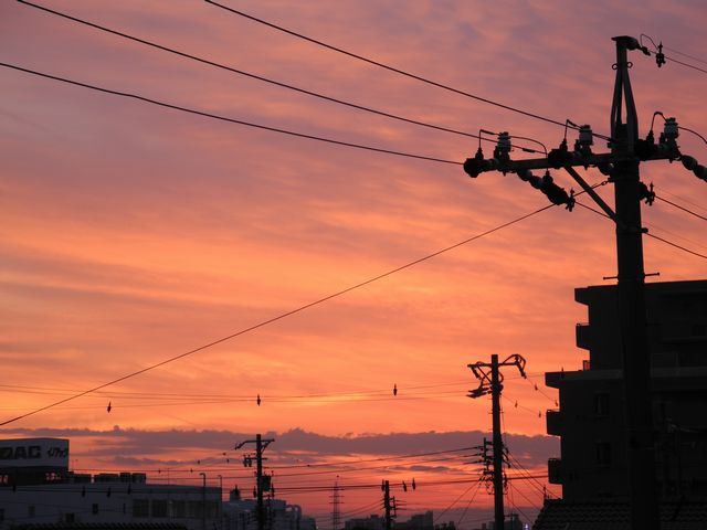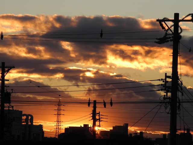 どんより曇り空 電柱にハトが3羽止まっていたのですが