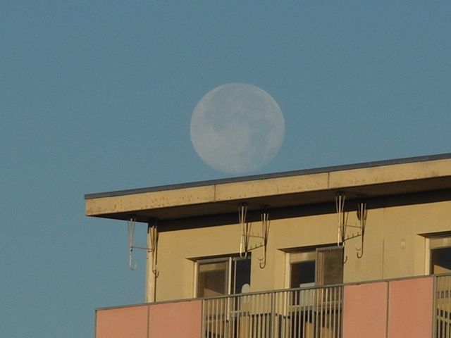 そんな中 西の空には綺麗なお月様 隠れるギリギリを狙い