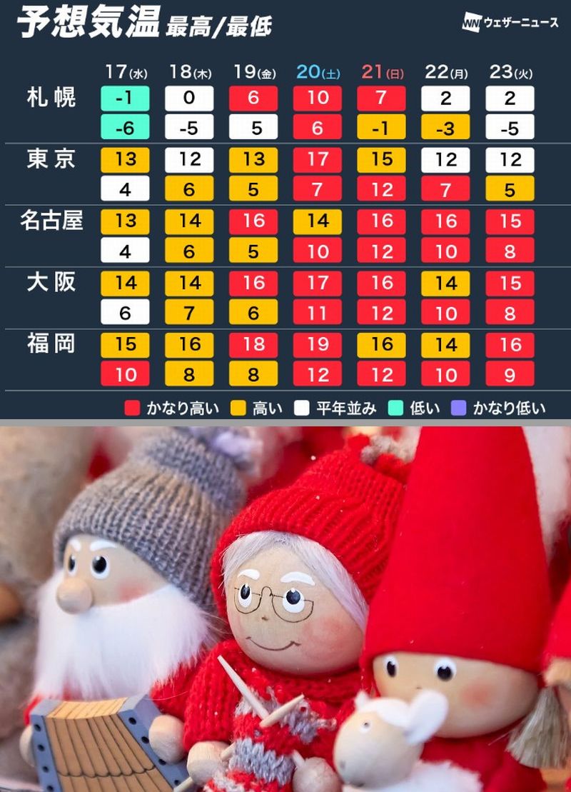 しかし19日は西日本から気温上昇。20日は東日本や北日本も平年を大幅に上回り、